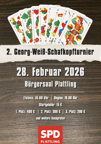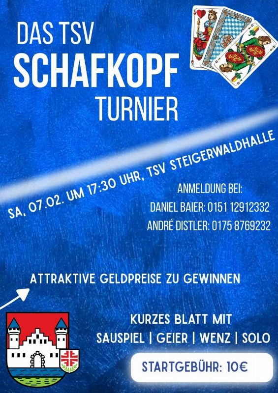 Gespielt wird mit der kurzen Karte. Solo, Wenz, Rufspiel. Plus-Minus. Startgebühren werden vollständig als Geldpreise ausgeschüttet. Brotzeit ab 13:30 Uhr verfügbar.