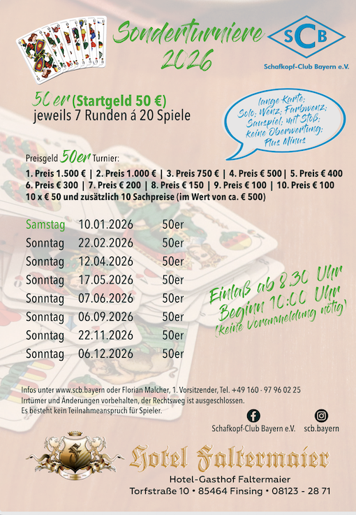 Liste - aller Termine - Schafkopfrennen in Bayern: