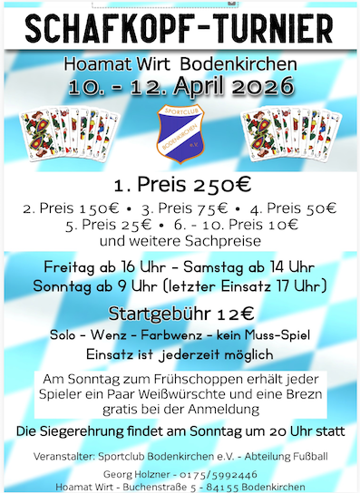Holzner Georg 0175/5992446 langes Blatt, mit Solo, Wenz und Farbwenz Plus Minus Punkte
